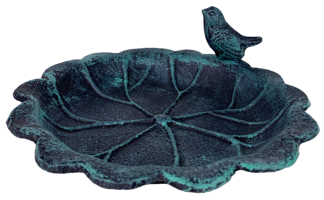 Fågelbad järn m fågel grön/svart 23x3H cm