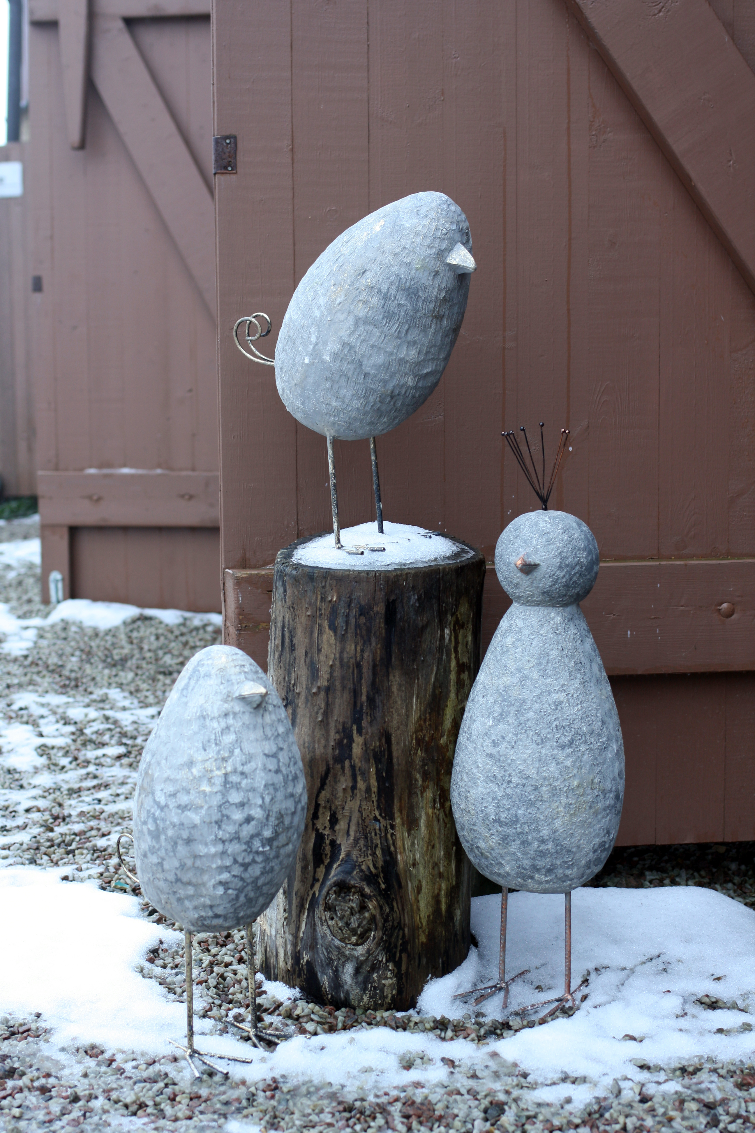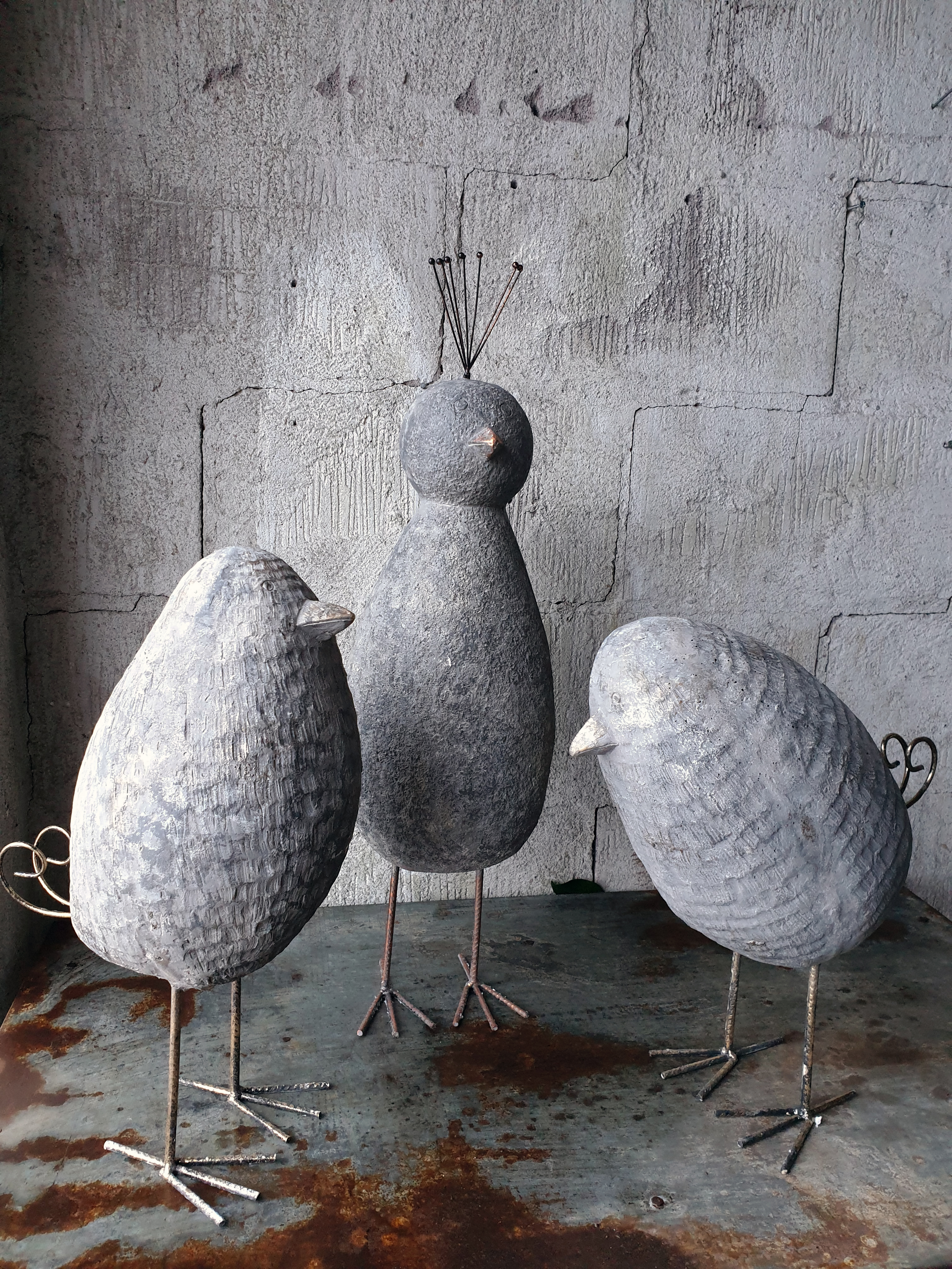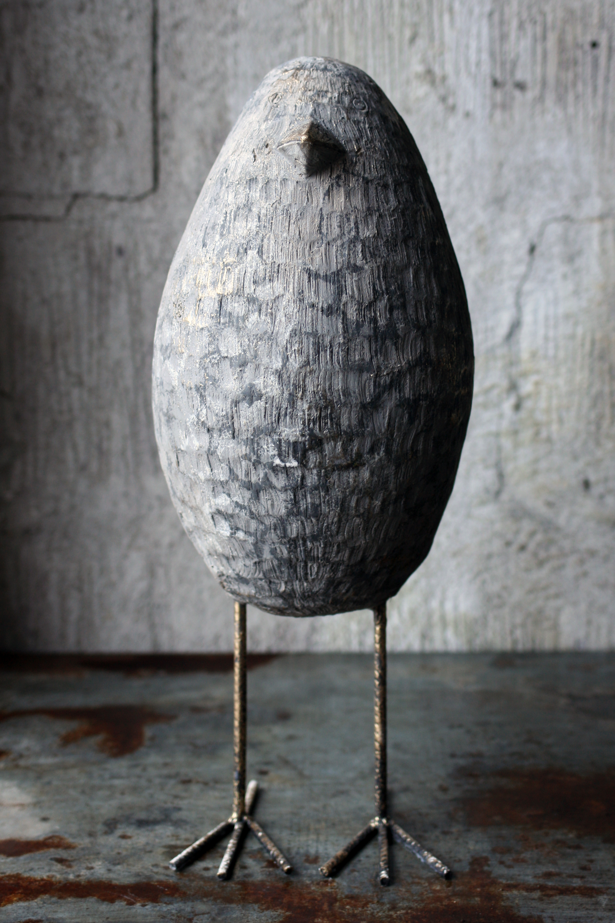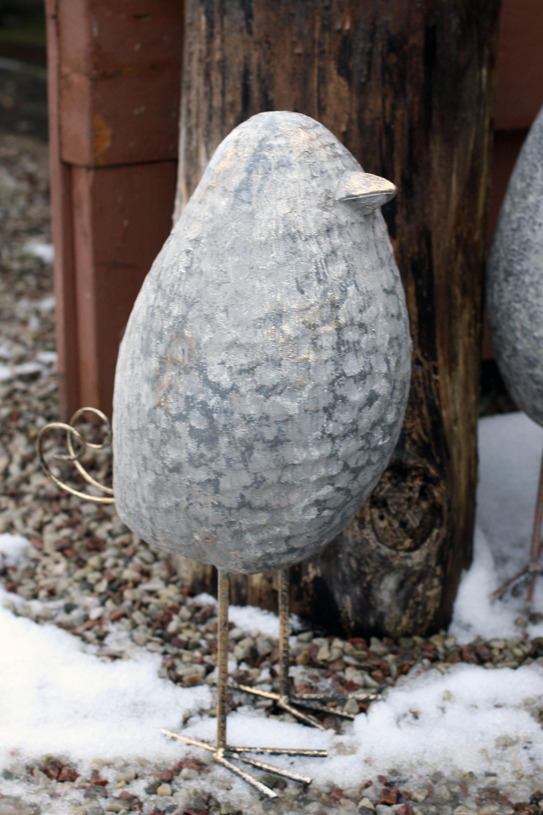 Fågel 33*20*52H grå m guld detaljer