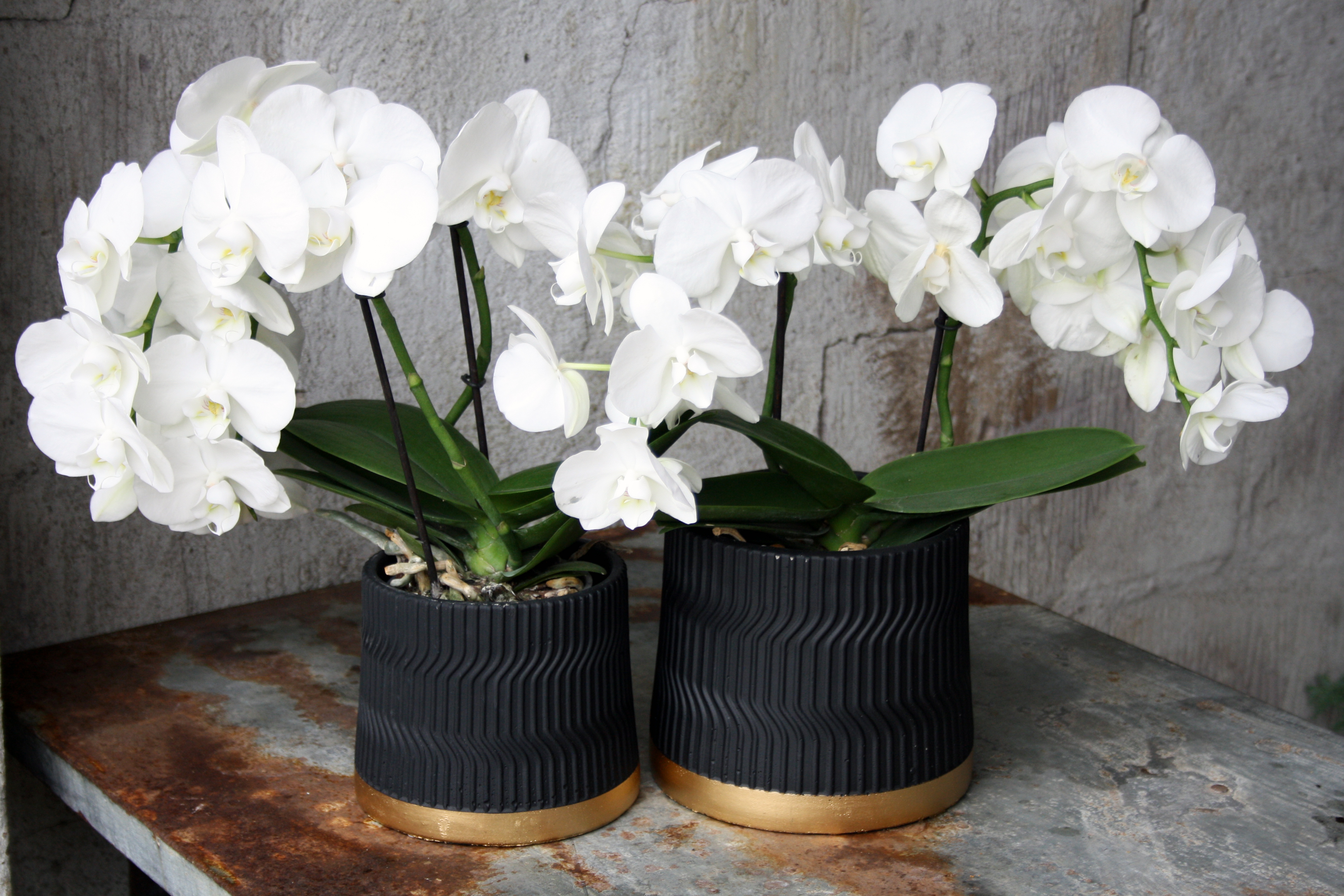 Kruka Ø18,5x15,5H räfflad svart/guld