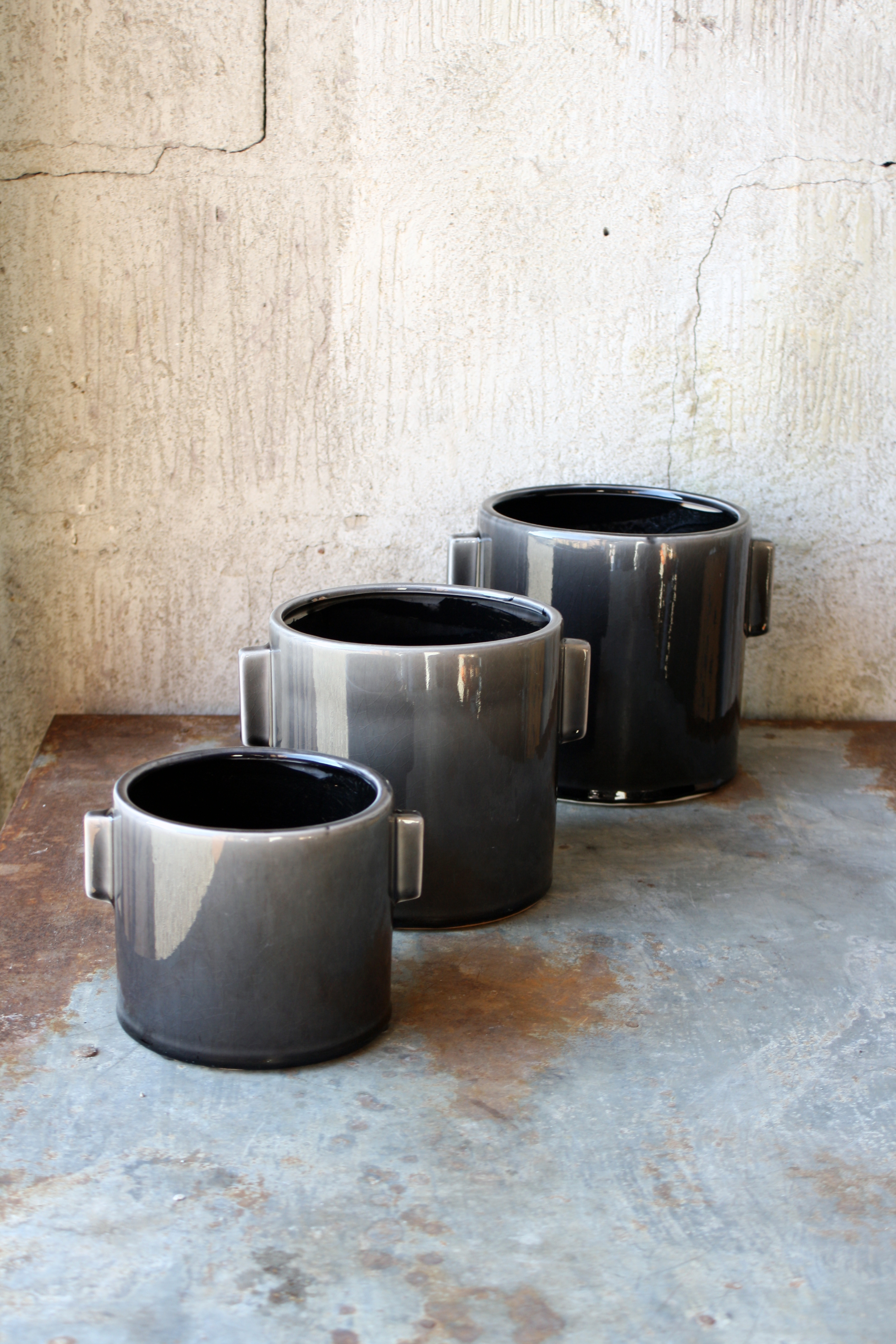 Kruka Ø16x16H cm släta öron svart/grå