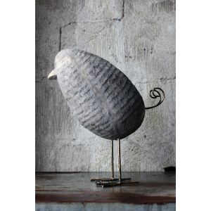 Fågel 44*20*48H grå m guld detaljer