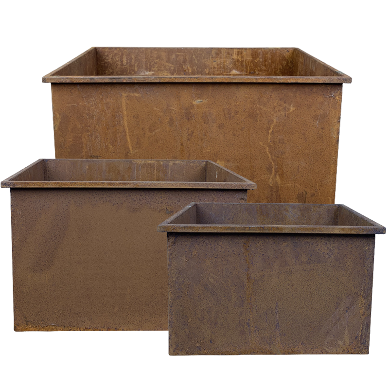 Kruka s/3 rektangulär rost 52x32x35H cm