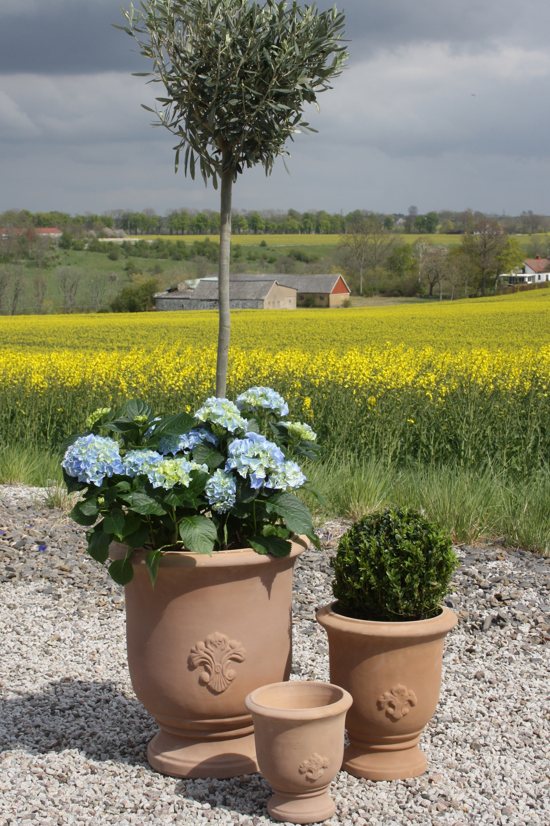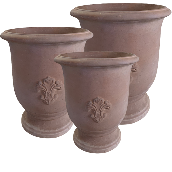 Kruka s/3 terracotta på fot ornament 43x50H cm