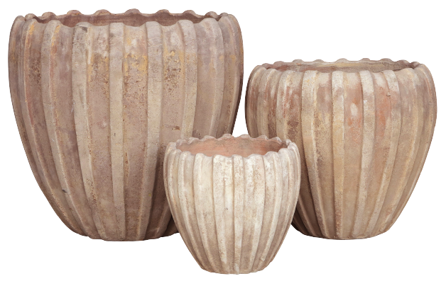 Kruka s/3 terracotta snäcka 50x47H cm