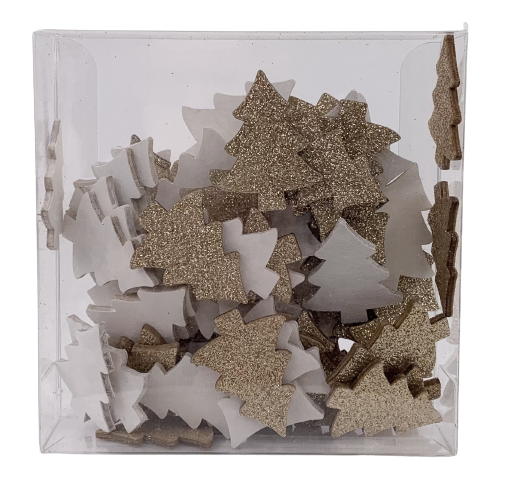 Dekorationsbox m guld och vit gran72 st